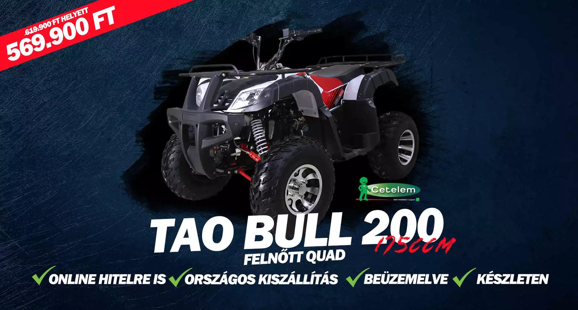 Az egyik kedveltebb járművűnk jelenleg a Tao Bul 200 - 175ccm Automata felnőtt túra quad, amely több féle színben is elérhető ide kattintva.
