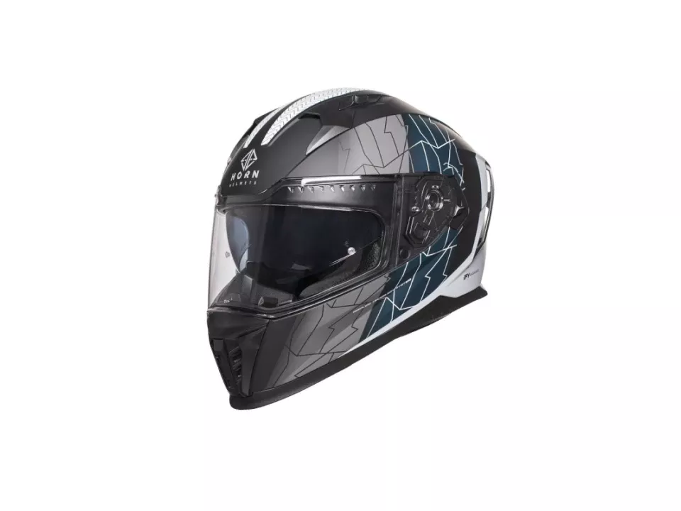 Horn Hirs Full Face Helmet with Sunglasses and Pinlock Preparation (Matte Black - Gray - Blue)