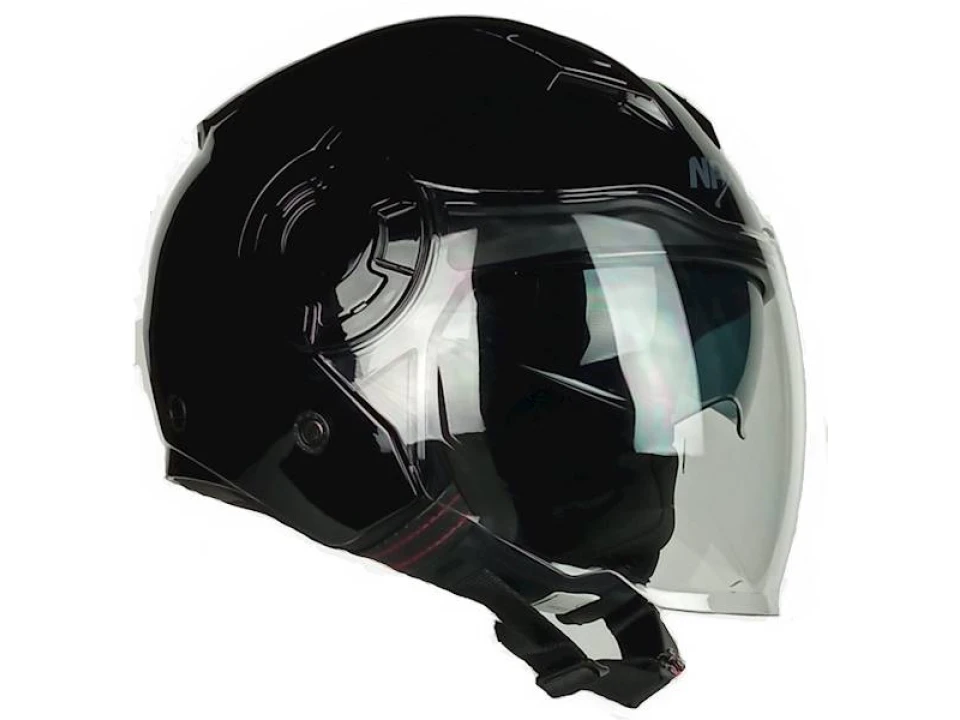 Otvorená prilba Naxa S28-A so slnečnými okuliarmi (lesklá čierna)