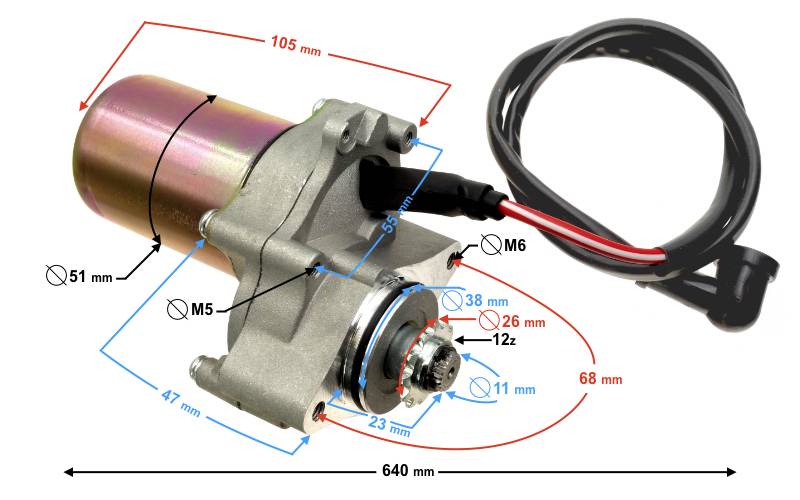 Önindító teljes hossza (mm): 147