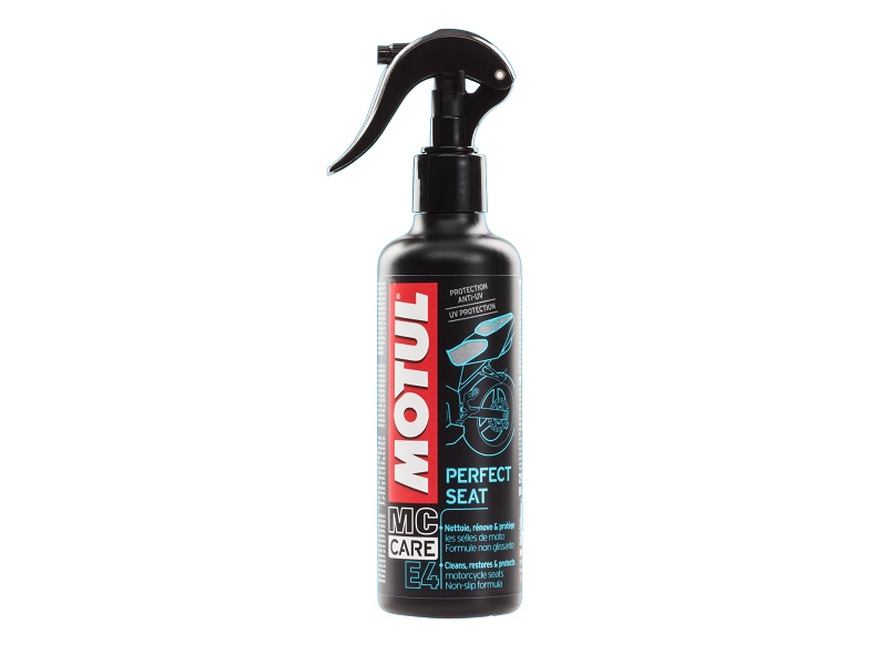 A motorkerékpár ülésének tisztítására a MOTUL Perfect Seat az optimális tisztító- és ápolószer. Mind a beépült port, mind a szennyeződéseket hatékonyan eltávolítja. Kimondottan vinyl anyagú ülésfelületekhez került kifejlesztésre. Visszahozza az ülés eredeti színeit. A szilikon- és oldószer nélküli összetétel nyomtalanul eltűnik és csúszásmentes felületet hagy maga után. A kezelt felület taszítja a port, az UV sugárzásnak ellenálló összetevők megakadályozzák a színek kifakulását. Az ápolószer friss narancsillatú.