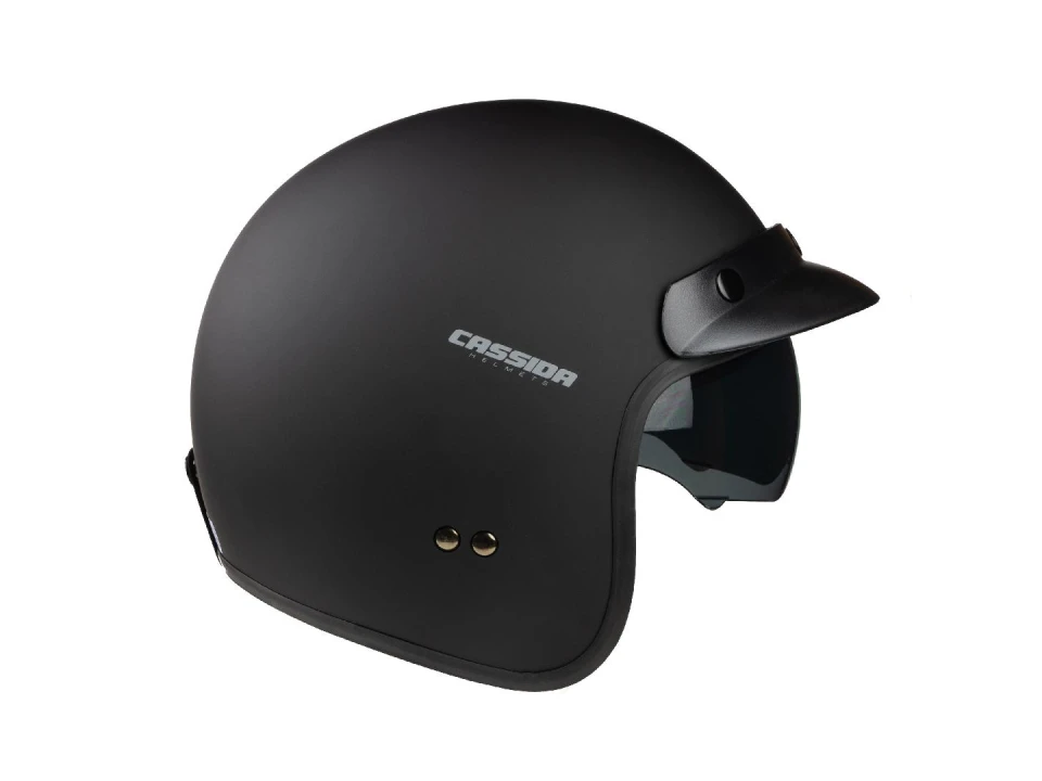 A Cassida Oxygen MF nyitott sisak kifejezetten robogókhoz alkalmas. A polikarbonát héj garantálja a motoros biztonságát. A praktikus beépített napszemüveg lehetővé teszi a motoros számára, hogy tűző napsütésben is jól lásson.