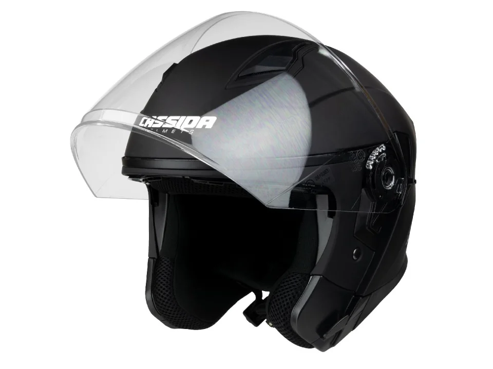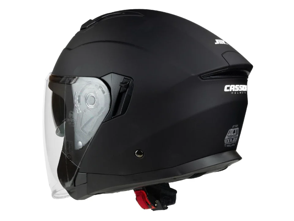 A Cassida Jet Tech bukósisak tökéletesen alkalmas a városi motorozásra, mopedekre, robogókra és chopperekre. A polikarbonátból készült anatómiailag formázott héjszerkezet maximális ellenállást biztosít az ütközés és a magas hő ellen. A legendás cseh gyártó által gyártott sisak hosszú plexivel és napellenzővel is rendelkezik.