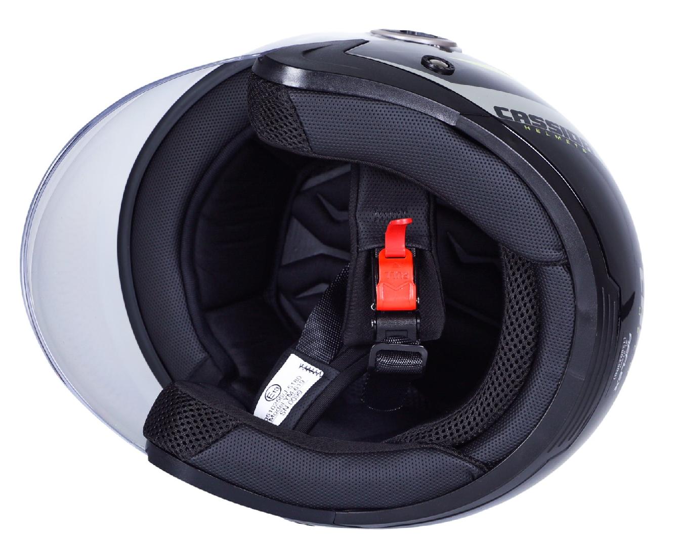 A bukósisak aerodinamikus polikarbonát héjszerkezete maximálisan ütésálló és ellenáll a magas hőmérsékletnek.