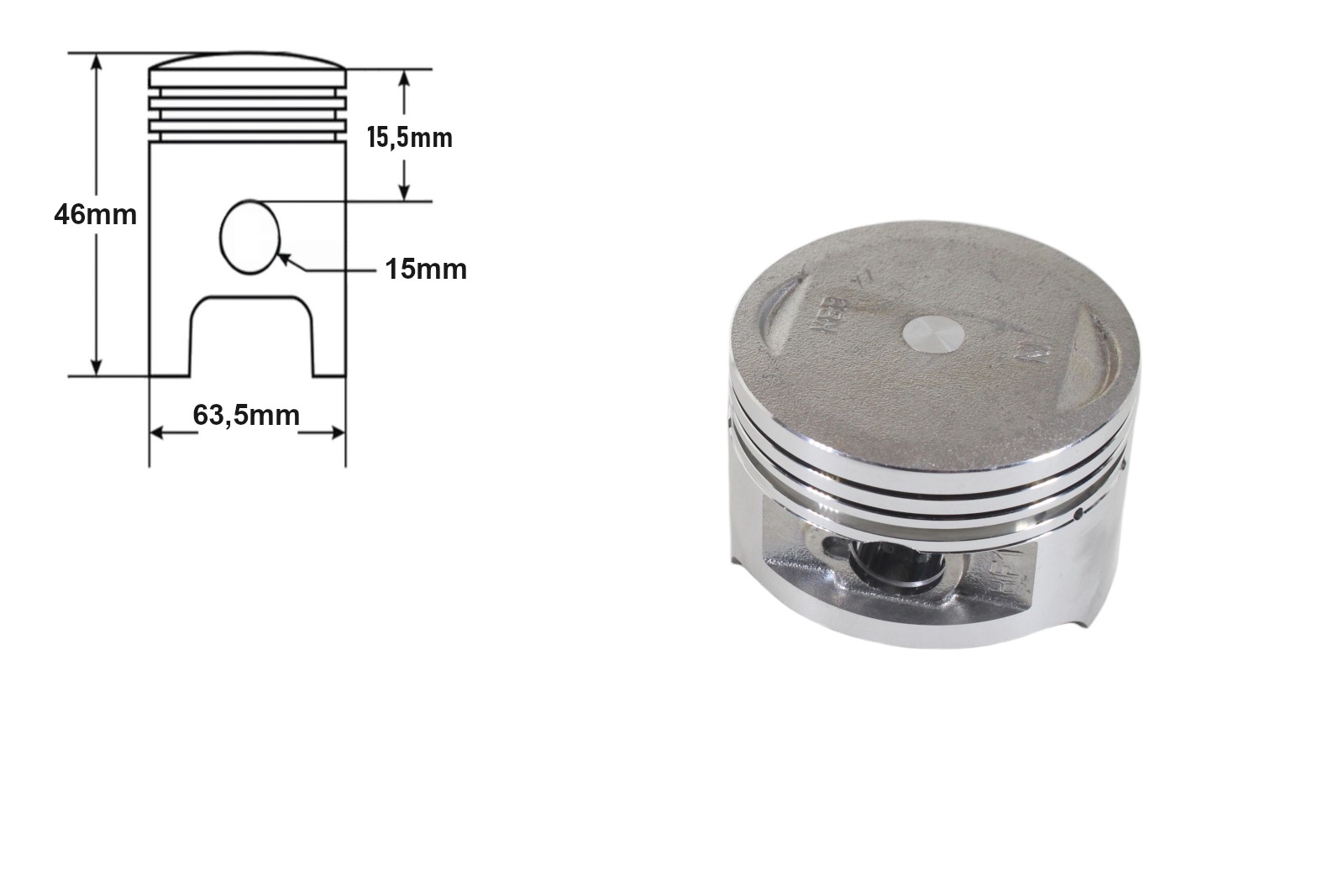 Magasság a dugattyú tetejéig: 46mm