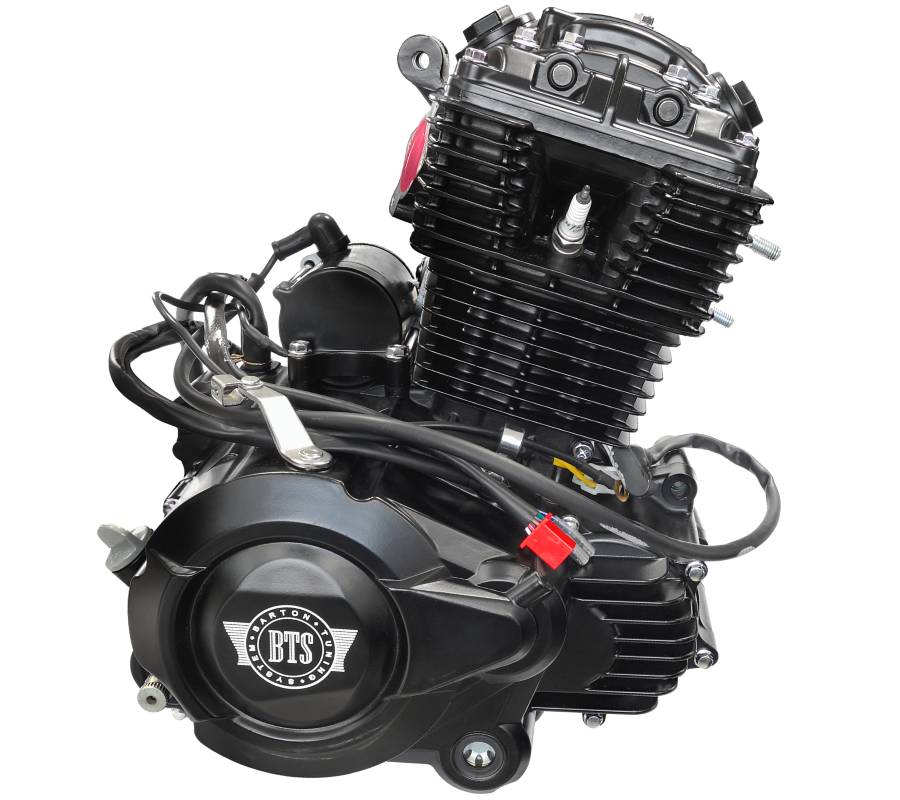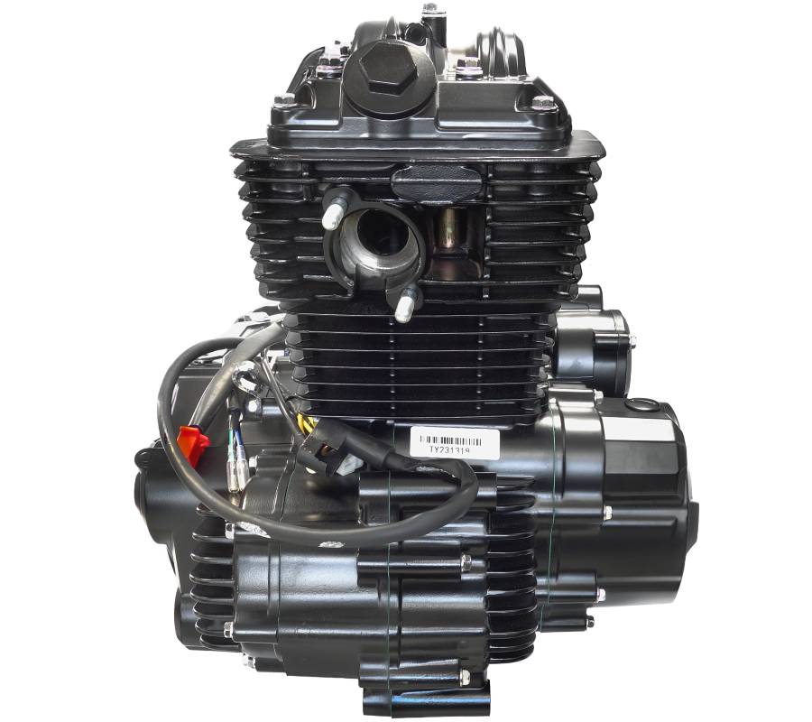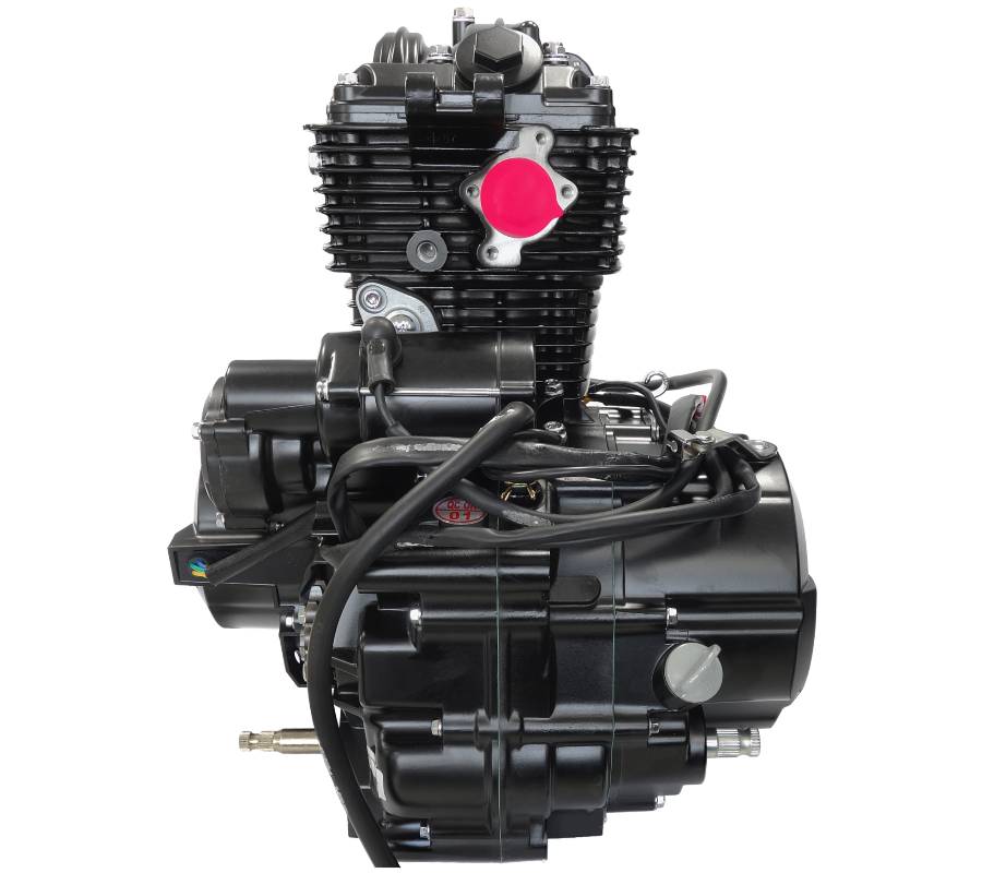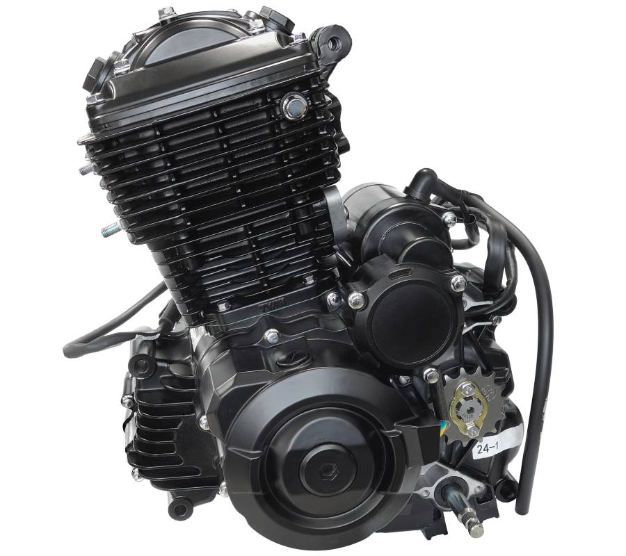 125 ccm-es, négyütemű, léghűtéses motorblokk, 6 sebességes váltóval.