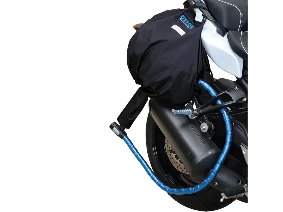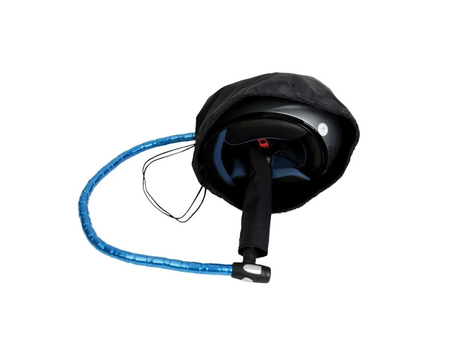 Biztonságos módja, hogy a sisakot a járművünknél hagyjuk. Láncos zárakkal kompatibilis melyek átmérője nem haladja meg a 40 mm-t. Megvédi a sisakot az időjárási behatásoktól. A zár nem képezi a termék részét.