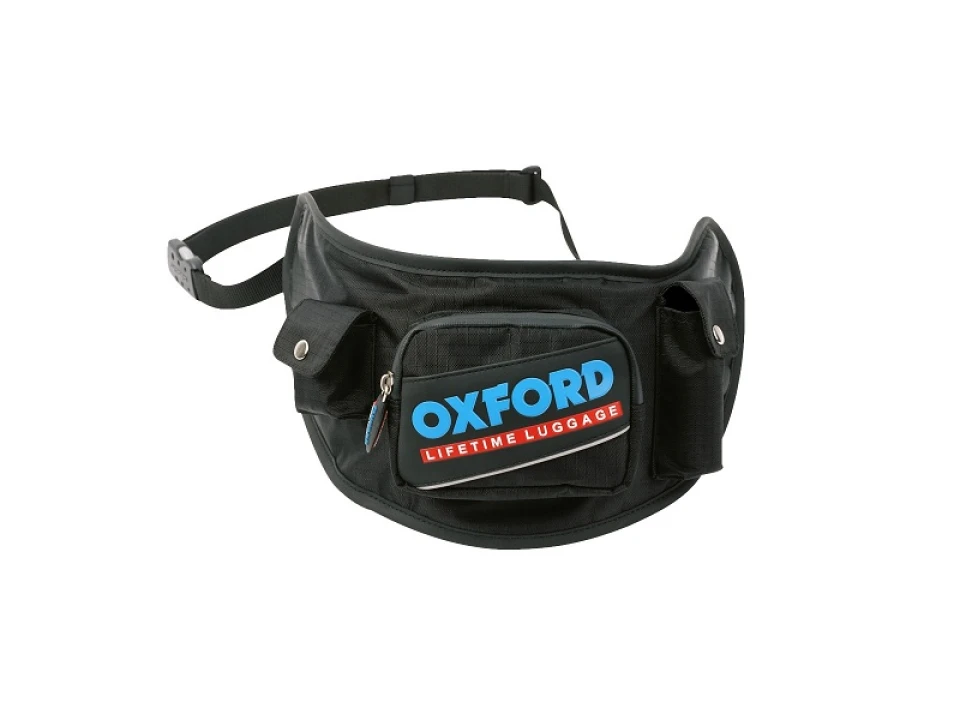 Praktikus övtáska motorosknak. 3 külső zsebbel rendelkezik, melyek közül a párnázott zsebben akár a tartalék plexit is tudjuk szállítani, anélkül, hogy megkarcolódna. Az állítható derékpántnak köszönhetően mindenki kényelmesen tudja hordani.