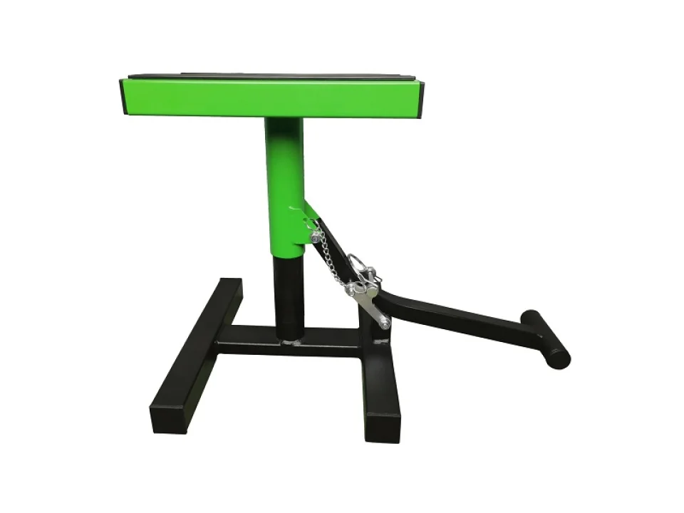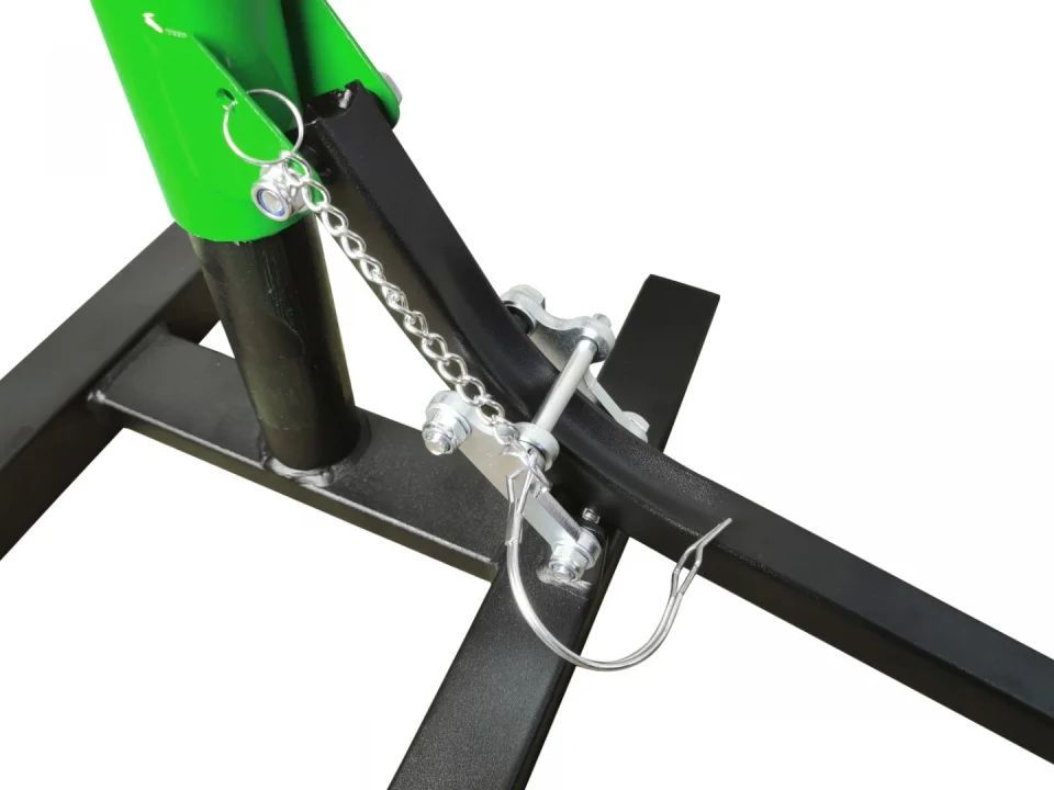 Robosztus acél konstrukció. Gumival borított felső rész. Csapszeges rögzítés. 28-40 cm között állítható magasság. Teherbírás: 150 kg.