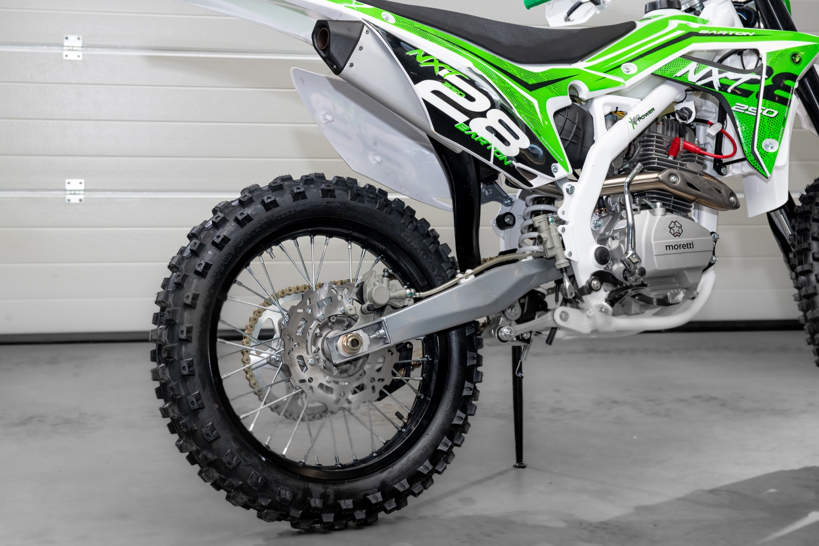 Az NXT 250 a Barton Motors kínálatának egyik legújabb darabja. Ez egy igazi cross motor, amely megfelel a kezdő és középhaladó motorosok igényeinek. Az erőforrás egy egyhengeres, négyütemű, léghűtéses motor 16 LE teljesítménnyel és ötfokozatú manuális váltóval. A LED-es első fényszórónak köszönhetően sötétben is jól láthatunk terepen. A kifinomult váz, a merev felfüggesztés alumínium lengőkarokkal és a kényelmes üléspozíció segít abban, hogy élvezd az akadályokkal tarkított terepen való motorozást.. A kerekek mérete 21/18", a hasmagasság eléri a 330 mm-t, az egész súlya pedig mindössze 110 kilogramm. A kezdő motorosok is értékelni fogják a nagy agilitást és a kézreállóságot minden sebességi fokozatban.