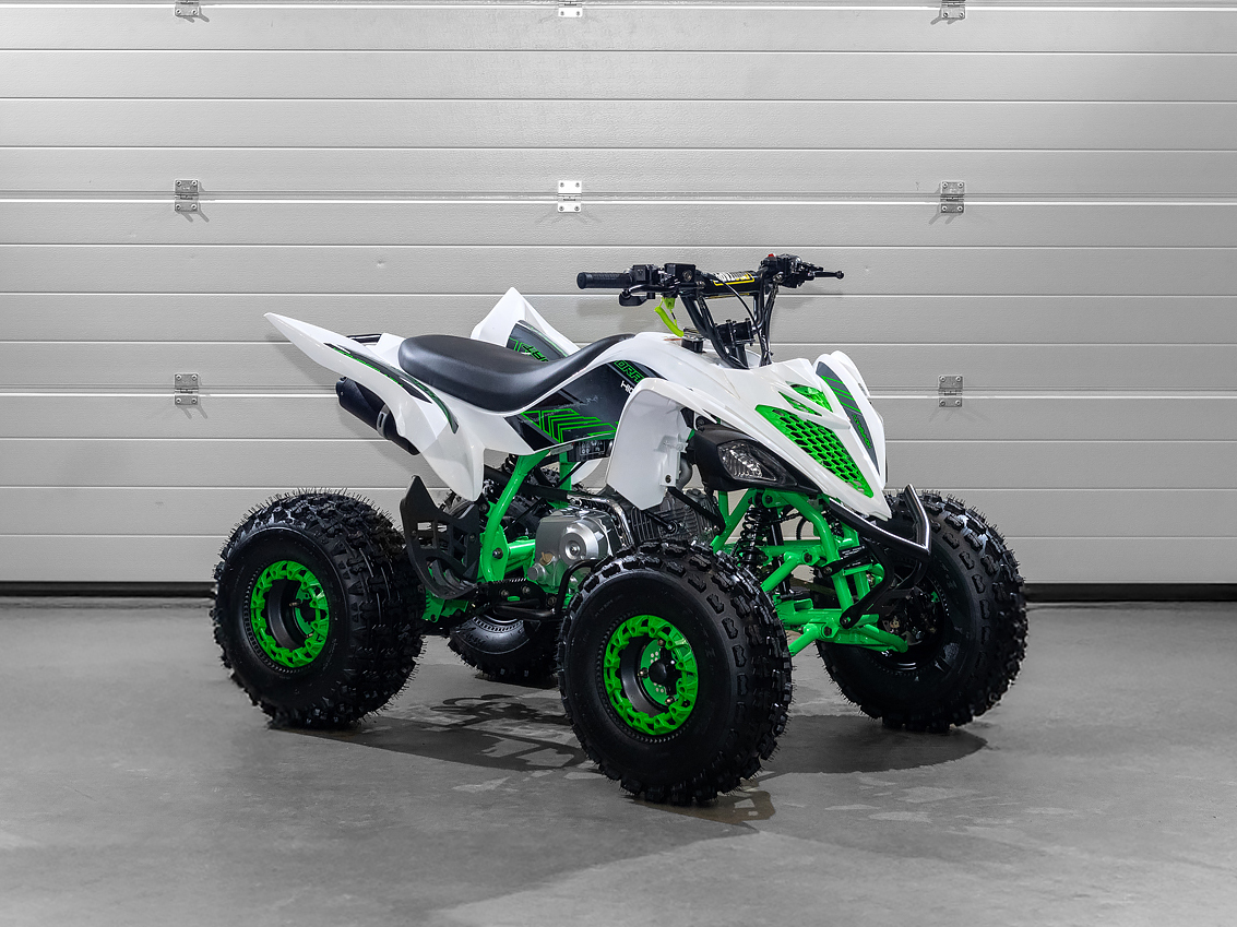 Stabil vázszerkezetet kapott, aminek a nehéz terepen való közlekedés sem okoz gondot. A motor egy modern, 125 ccm-es, 4 ütemű, léghűtéses motor, ami 8 LE teljesítményre képes. Ehhez az erőforráshoz 1+1 sebességes automata váltót társítottak, ami könnyebb vezetést tesz lehetővé mint a manuális váltó. A gázkar tökéletes adagolhatóságot tesz lehetővé ami precíz kezelhetőséget biztosít. Sötétben is használható, a láthatóságról az első-hátsó lámpák gondoskodnak. 70 kg maximális terhelhetőség. Vezetése 8-9 éves kortól ajánlott.