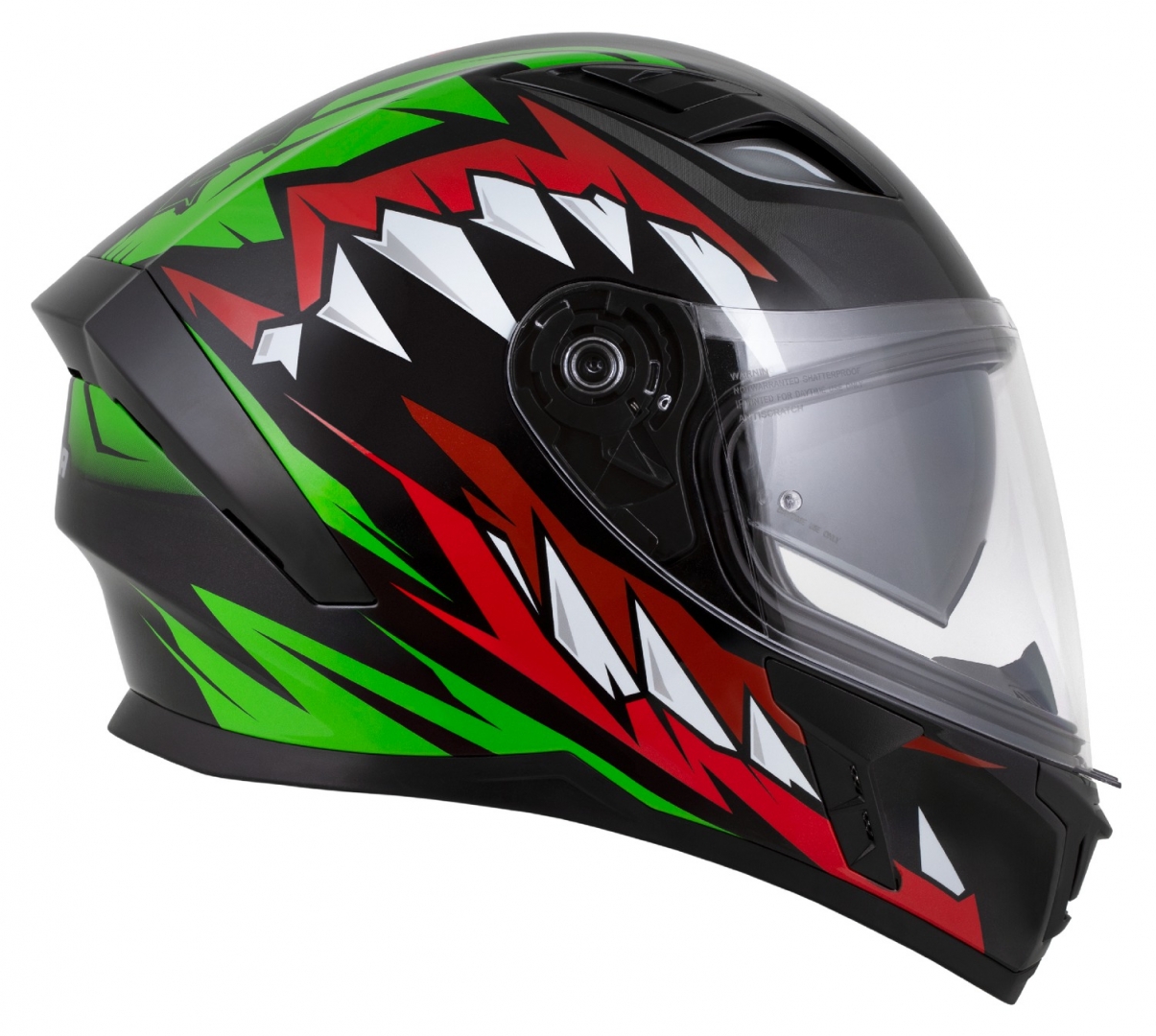 Az ütésálló polikarbonát biztosítja a fokozott védelmet, míg a belső, puha bélés kényelmes illeszkedést biztosít a hosszú utazások során. Az integrált, felhajtható napszemüveg védi a szemét a nap sugaraival szemben, anélkül, hogy korlátozná a látómezőt. Kivehető orr-és áll deflektorral rendelkezik.
