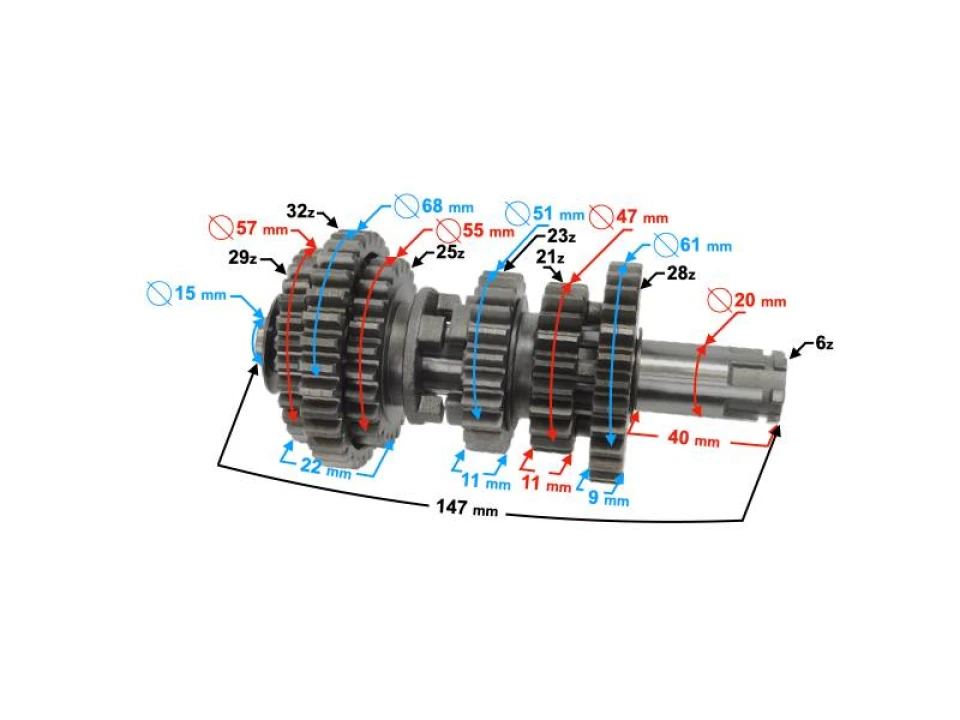Fogaskerék átmérő: 61/47/51/55/68/57 mm
