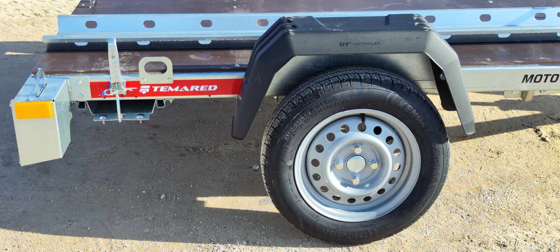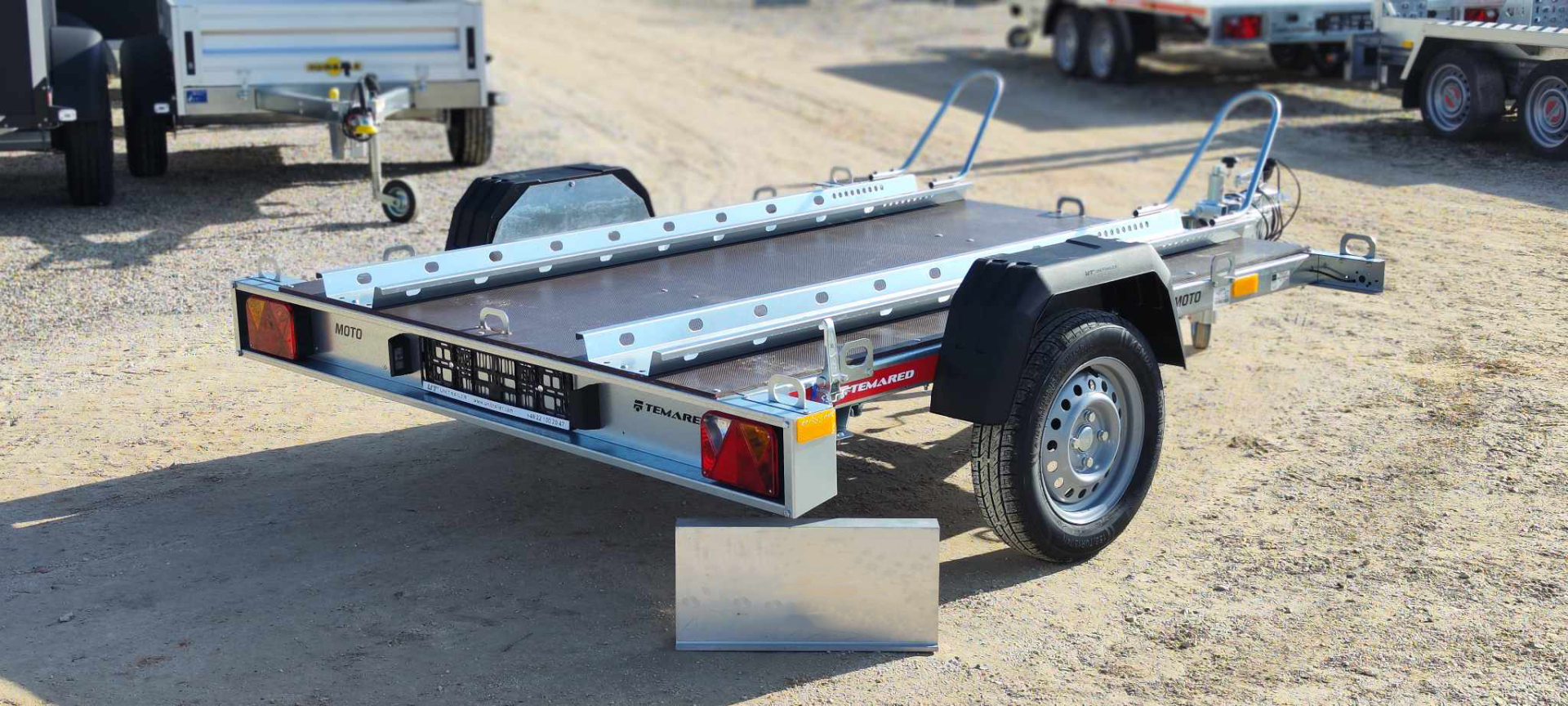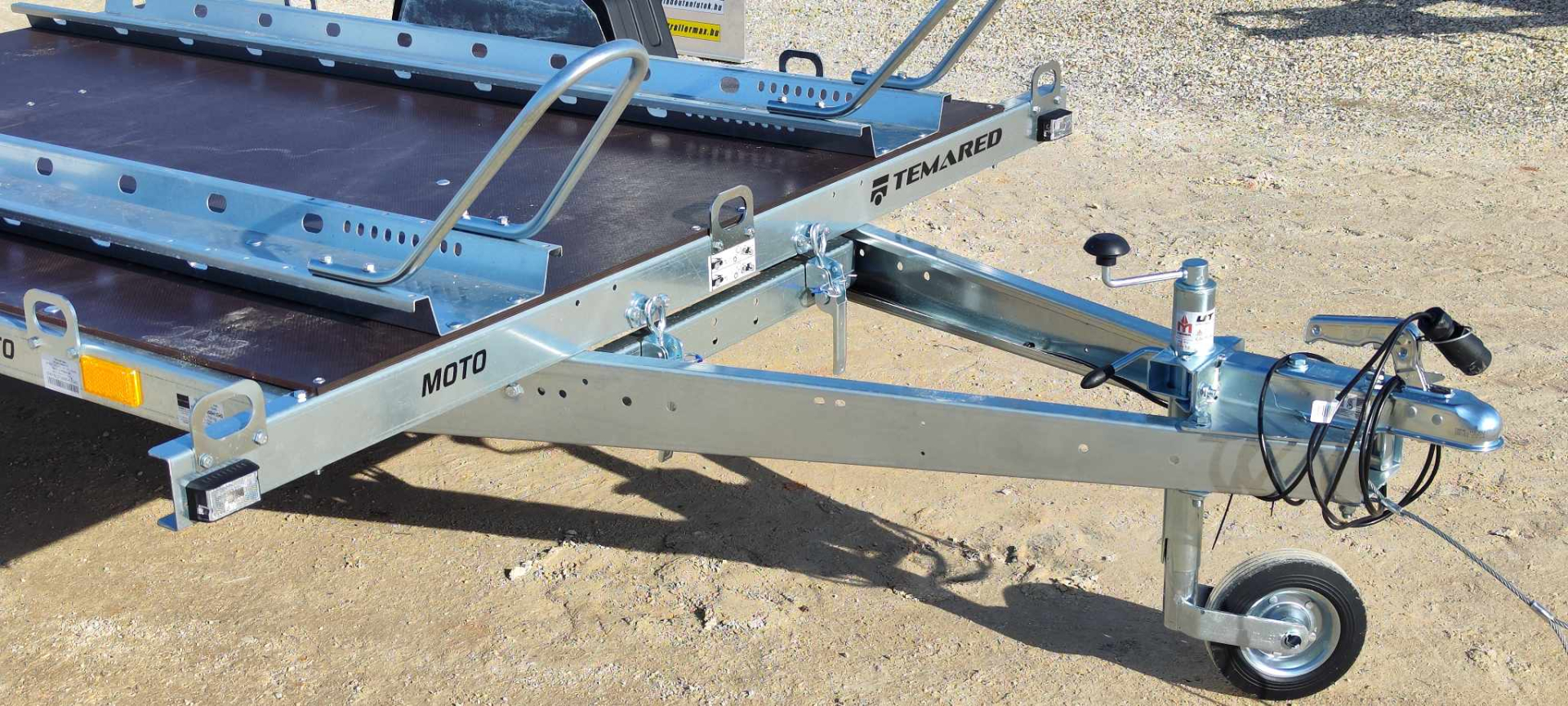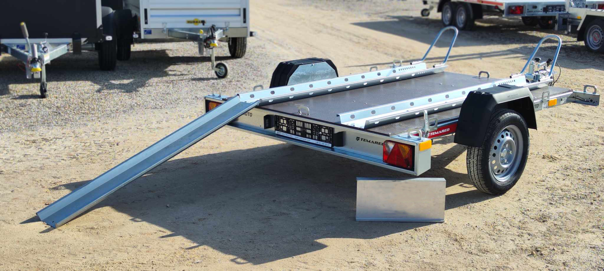 Az alváz és a motorszállító kiegészítők horganyzott acéllemezből készülnek, amely hosszú élettartamot és fokozott ellenállást nyújt a külső hatásokkal szemben, így az utánfutó kültéri tárolás mellett is megőrzi minőségét. A csomagban található 2 darab sín kerékívvel és a rámpa megkönnyíti a motorok biztonságos fel- és lerakodását, így a szállítás gyorsan és kényelmesen elvégezhető.