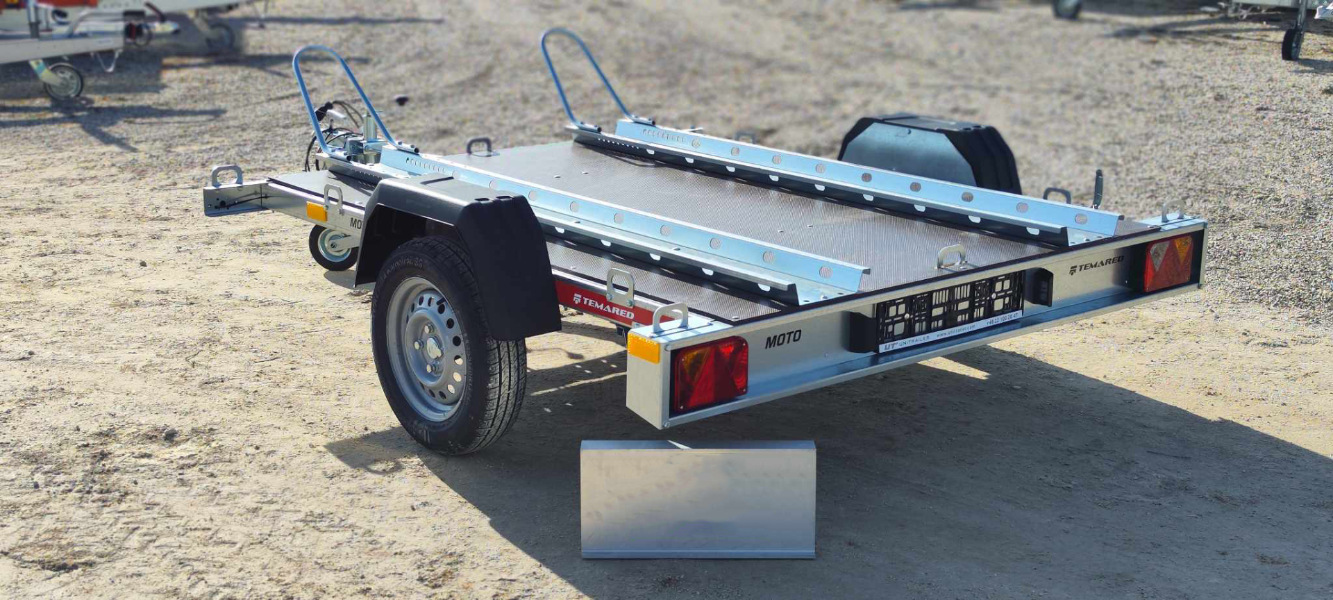 A Temared Moto 2 egy kifejezetten motorok szállítására tervezett, kétmotoros utánfutó, amely a biztonságot és a praktikumot ötvözi a mindennapi használat során. A plató bélelt kivitelű, így a rakomány maximális védelmet kap a szállítás alatt, miközben a torziós rugózás biztosítja a sima és stabil futást még nehezebb terhelés esetén is.