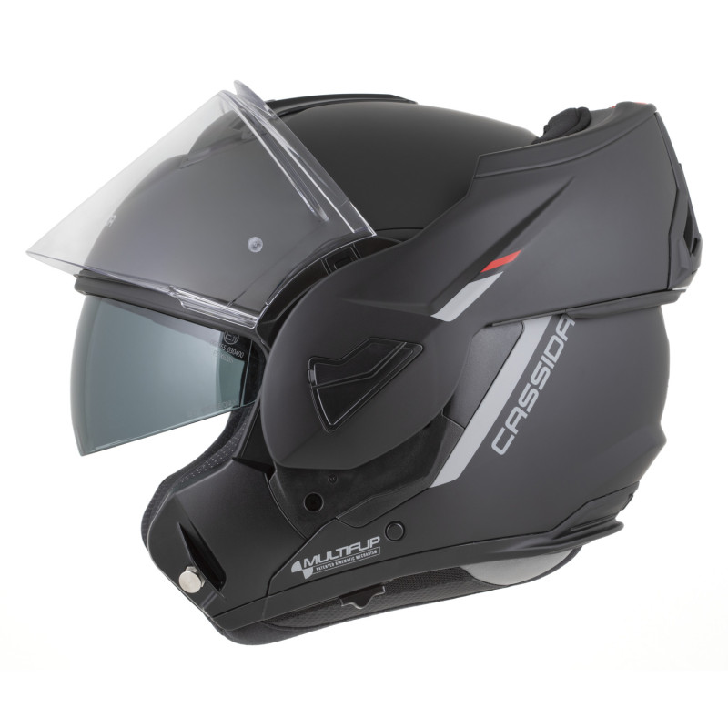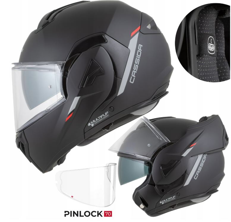 A Cassida MultiFlip bukósisak a sokoldalúság és a megbízható védelem tökéletes kombinációja. Modern kialakítása és fejlett funkciói ideálissá teszik mind városi, mind túramotorosok számára, akik egy kényelmes, praktikus és biztonságos sisakot keresnek.