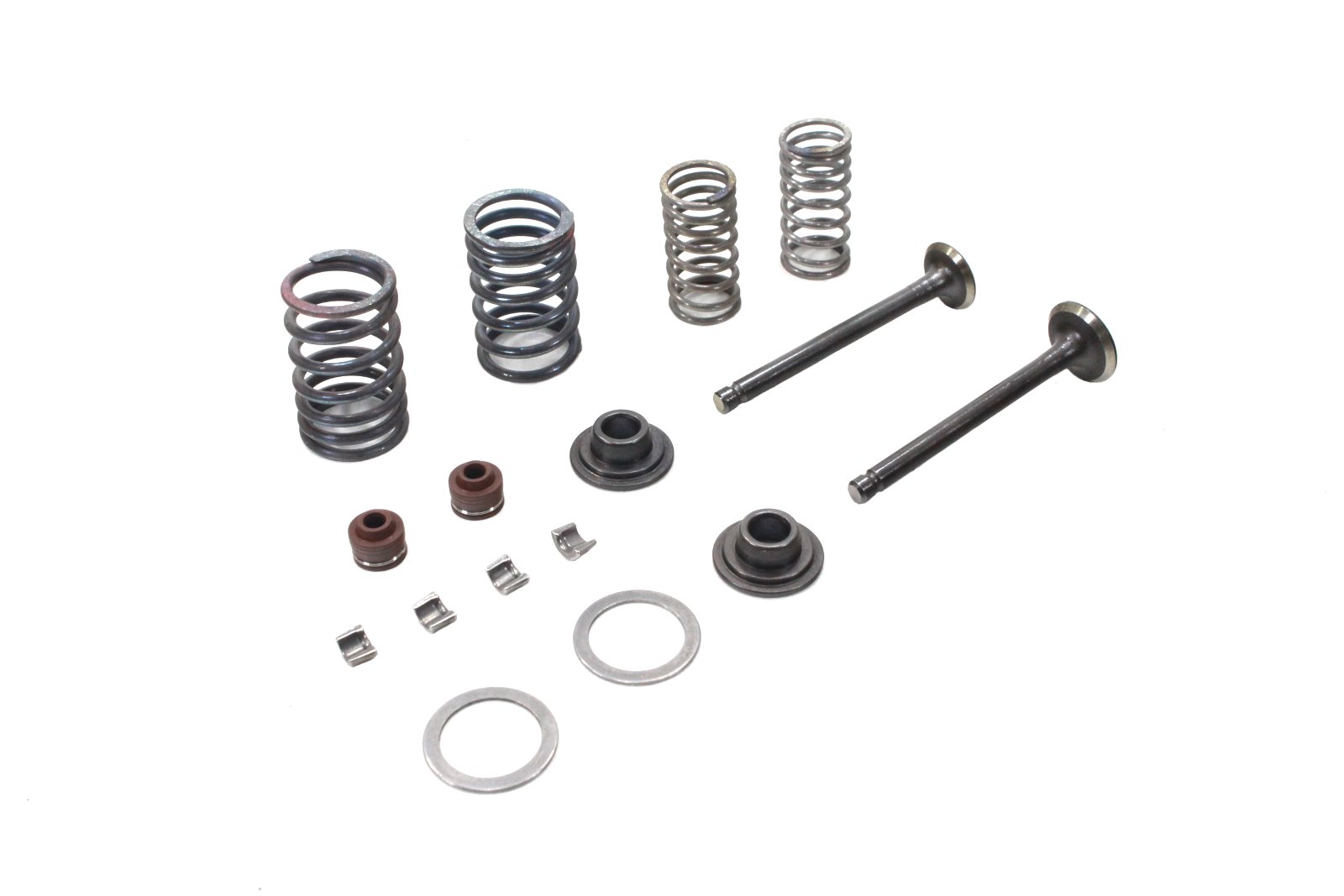A szett tartalmazza mindkét szelepet, a négy rugót, a négy biztosítékot és a két felső tányért.